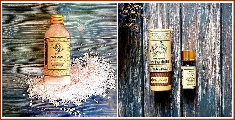 *Muối tắm hoa hồng : Thơm ngọt ngào, quyến rũ, đặc trưng của hoa hồng. Sử dụng : Xông mặt, ngâm bồn, ngâm chân, tẩy tế bào. Thành phần : Muối khoáng, tinh dầu hoa hồng, glycerin, vitamin E, vitamin B3, dầu jojoba