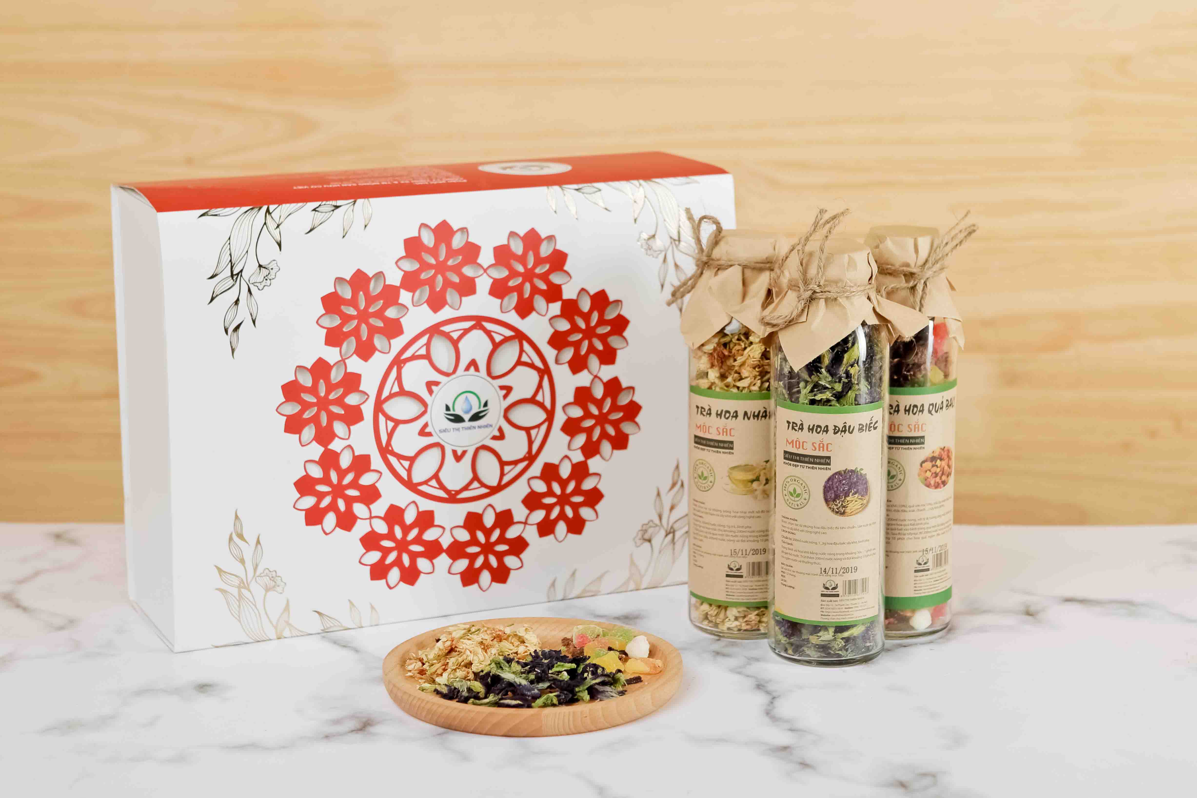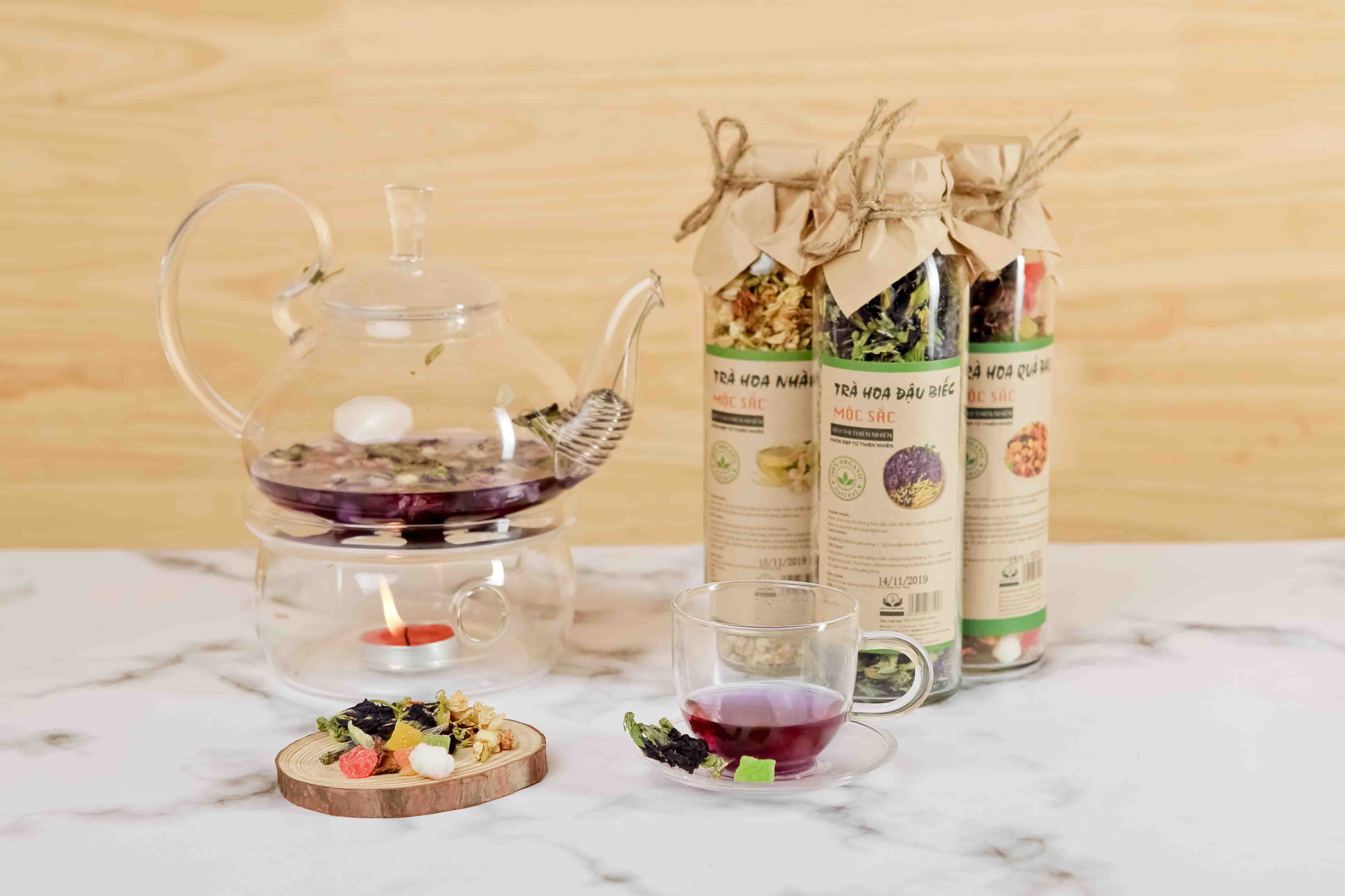 Trà hoa Mộc Sắc là sản phẩm có nguồn gốc hoàn toàn từ thiên nhiên, an toàn, sản xuất trên dây chuyền hiện đại. Siêu thị thiên nhiên có hơn 50 loại trà hoa quả thảo dược để bạn có thể tự tay mix tặng tới những người thân yêu của mình.
