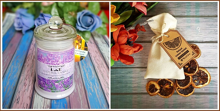 *Nến thơm oải hương : Xông thơm toàn bộ nhà, làm ấm và sáng bừng không gian. Thanh lọc không khí và khử mùi ẩm mốc. Decor Tết.