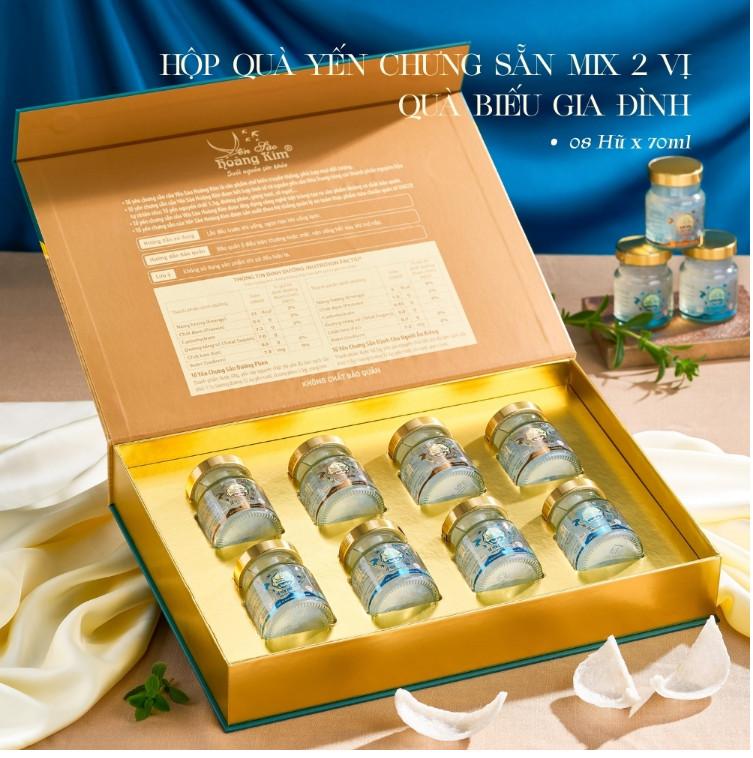 Tiện Lợi & Sang Trọng: Hộp quà 8 hũ thiết kế tinh tế, là món quà sức khỏe đẳng cấp và vô cùng tiện lợi, có thể sử dụng ngay mà không cần chế biến.