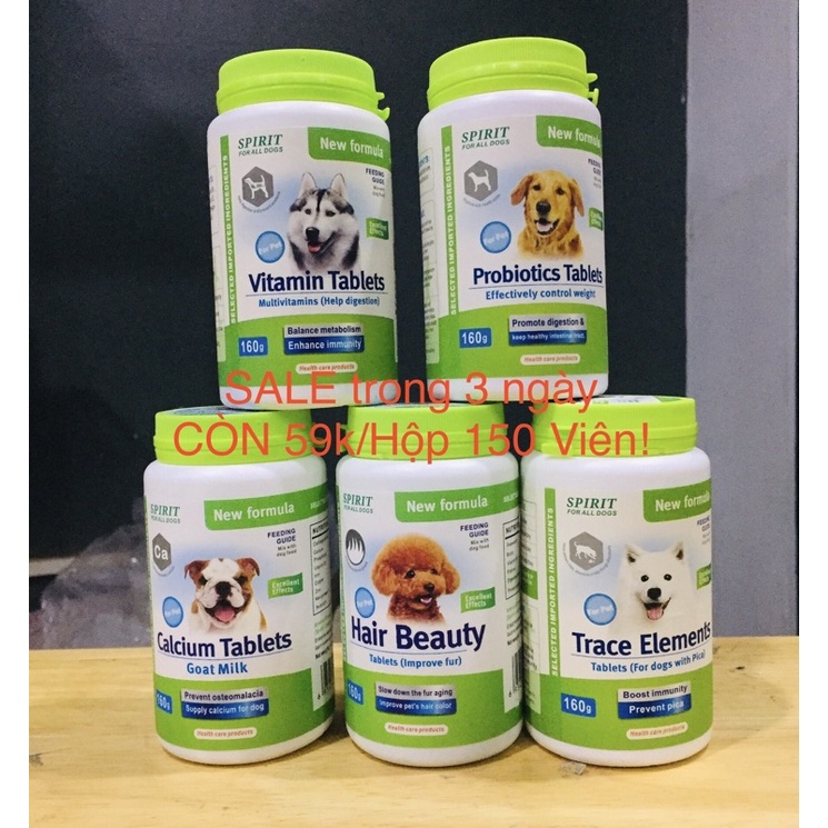 Giới thiệu Hộp SPIRIT bổ sung CANXI, Khoáng, VITAMIN TỔNG HỢP, DƯỠNG LÔNG DÀNH CHO CHÓ MÈO