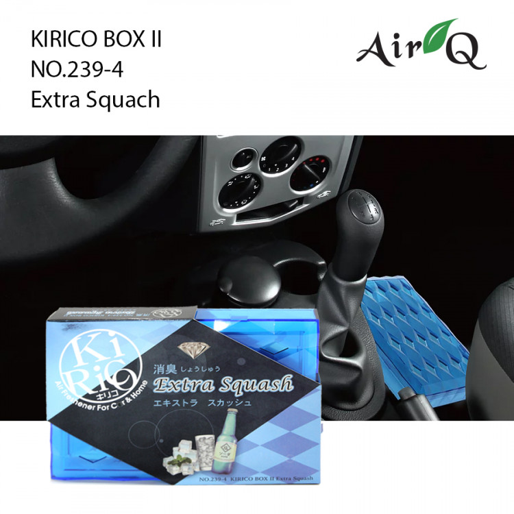 - Hộp thơm khử mùi AIR-Q KIRICO BOX II NO.239-4 Extra Squash 160g được chế tạo với công thức đặc biệt của các chuyên gia hàng đầu tại Đài Loan, với hương thơm từ những quả bí đao nguyên chất căng mọng giúp bạn thư giãn thoải mái, tăng khả năng tập trung khi tham gia giao thông. Thiết kế nhiều mặt cắt dạng kim cương vừa hỗ trợ lan toả mùi hương tốt hơn vừa tạo nét chấm phá nổi bật trong không gian