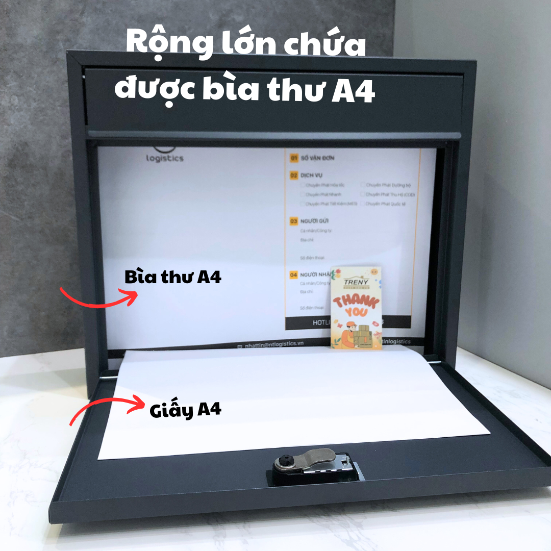 Không gian đựng thư rộng rãi, kiểu ngang đựng vừa bìa thư A4, giấy A4 các loại