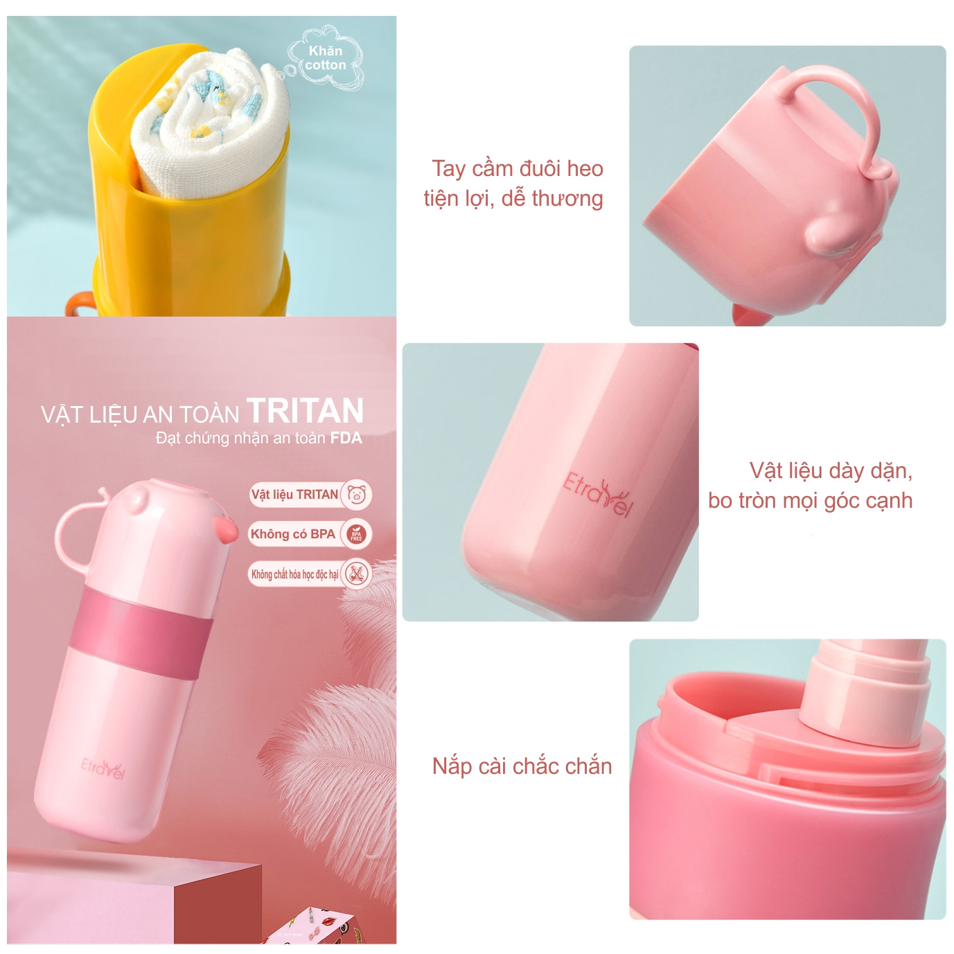 Một sản phẩm Etravel mới với phiên bản dành cho bé yêu của bạn. Hộp tiện ích du lịch được làm từ vật liệu siêu an toàn TRITAN cùng với nhựa ABS và TPU nguyên sinh an toàn cho sức khỏe với thiết kế vô cùng đáng yêu và tiện lợi gồm: