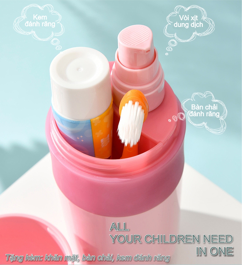 SẢN PHẨM TẶNG KÈM: Bàn chải, kem đánh răng, khăn mặt cotton họa tiết dễ thương.