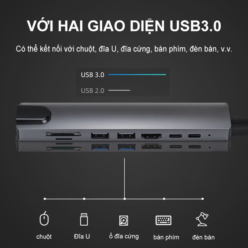 Máy tính & Laptop > Phụ Kiện Máy Tính > Bộ chia cổng USB & Đọc thẻ nhớ || {HOT} Hub Type C 8in1-Cổng chuyển đổi HUB USB Type-C to HDMI,USB 3.0,0SD,TF,RJ45,PD Type-C cho Laptop Macbook{NBZJQ}