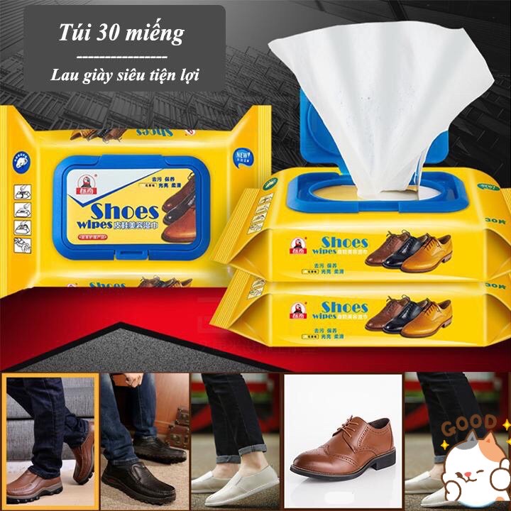 - khăn lau giày Làm sạch diệt khuẩn mà không có bất kỳ hóa chất khắc nghiệt có thể gây hại cho vải hoặc da - Không cần phải rửa tay sau khi sử dụng khăn lau giày để vệ sinh giày - khăn lau giày cùng bạn giữ cho giày luôn sạch sẽ mà không lo bị xỉn màu hay khô da - Có thể dùng khăn lau giày để vệ sinh trên các loại da khác nhau, cũng có thể dùng để lau sạch đế giày - Làm sạch giày dễ dàng nhanh chóng, không cần thêm bất kì vật dụng hay hóa chất hỗ trợ nào - Sản phẩm có 2 loại ( SNEAKER và SHOES) phù hợp với các loại giày khác nhau