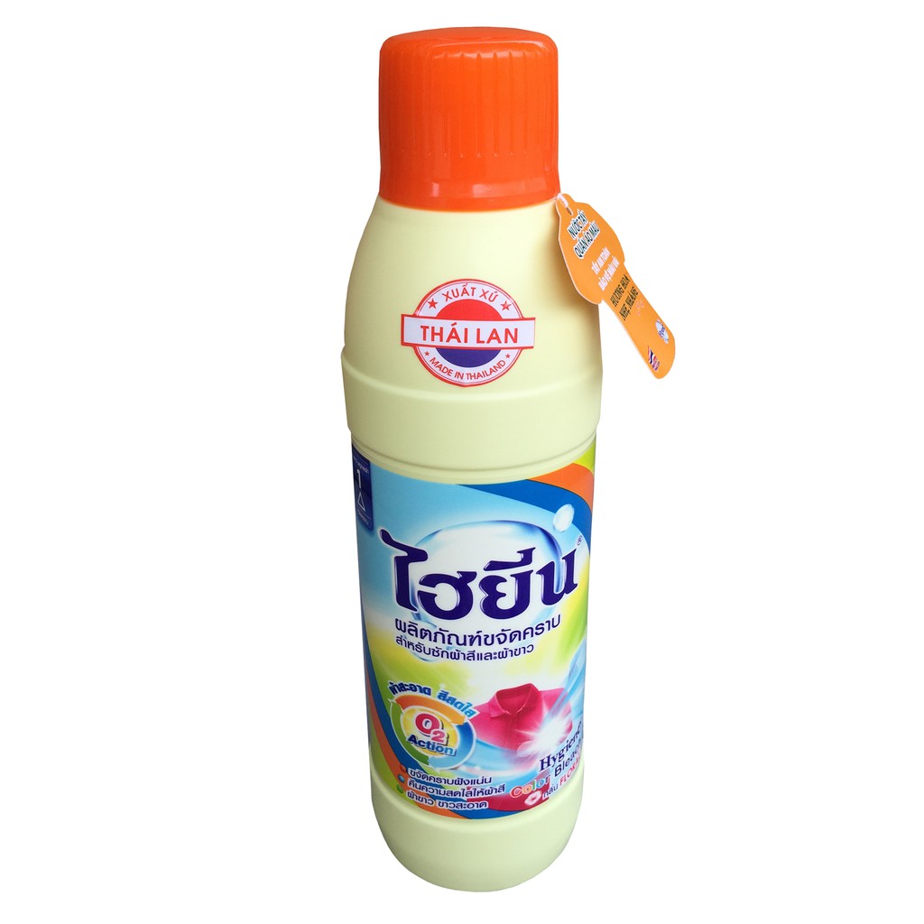 Đặc điểm sản phẩm: – Diệt khuẩn, tẩy sạch những vết bẩn khó tẩy dính trên quần áo, giúp quần áo luôn sạch như mới mà bột giặt thường không thể tẩy được. – Đặc biệt nước tẩy Hygiene có mùi thơm nhẹ nhàng hương hoa cỏ, làm cho quần áo luôn thơm mát. Cách sử dụng: – Thử tương thích trước khi sử dụng: Chuẩn bị thử dung dịch bằng cách pha loãng 15ml vào 8 lít nước. Lấy 1 giọt dung dịch thử cho lên quần áo (phần ko lộ ra ngoài) , thấm khô và kiểm tra màu sắc, nếu màu sắc không thay đổi thì có thể dùng được. – Giặt tay : Hoà tan 15ml nước tẩy với 10 lít nước loãng có pha bột giặt, cho quần áo vào ngâm khoảng 15 phút sau đó giặt như bình thường. – Đối với vết bẩn khó tẩy: pha loãng 15ml nước tẩy với 10 lít nước ngâm khoảng 30 phút rồi tiến hành giặt với bột giặt như bình thường. – Giặt máy : + Với máy giặt của trước: đổ 30ml nước tẩy vào hộp đựng thuốc tẩy. + Với máy giặt cửa trên có hộp đựng thuốc tẩy: đổ 90ml nước tẩy vào hộp đựng thuốc tẩy + Với máy giặt cửa trên không có hộp đựng thuốc tẩy: pha loãng 90ml nước tẩy với 75ml nước có pha bột giặt. Lưu ý : – Không đổ trực tiếp lên quần áo mà phải pha loãng trước khi sử dụng – Không sử dụng cho quần áo bằng len, lụa, lông thú – Nếu tiếp xúc với mắt phải rủa thật nhiểu nước, nếu nuốt phải uống thật nhiều nước rồi nhanh chóng đến bệnh viện.