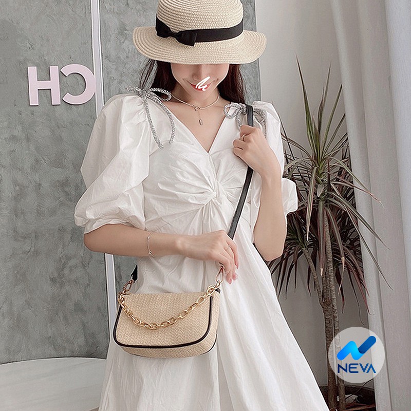 Giới thiệu (HOT) Túi Kẹp Nách Chất Cói Siêu Nhẹ Phối Quai Da Xích Xinh Xắn NEVA939
