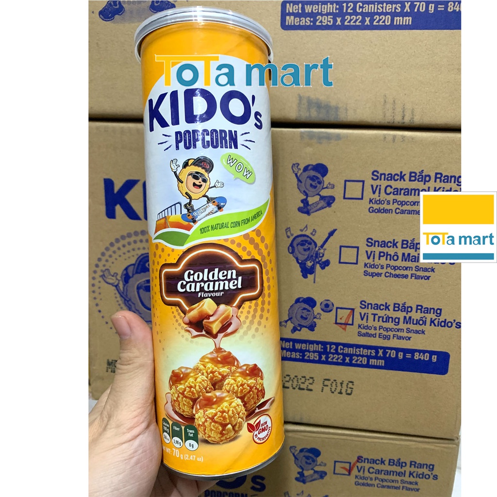 Snack bắp rang KIDO có nguyên liệu làm từ 100% bắp tự nhiên từ Mỹ, không biến đổi gen. Bắp nổ tròn xoe, giòn tan được đóng lon chắc chắn, xinh xắn. 🎫 Có 3 vị: ♦ Caramen ngọt thơm. hsd 12/2022 ♦ Phô mai béo ngậy. hsd 12/2022 ♦ Trứng muối đậm đà hấp dẫn. hsd 12/2022