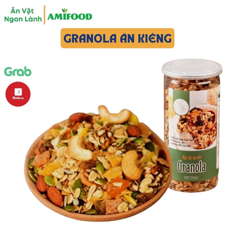 Giới thiệu Hũ 500Gram Granola Ăn Kiêng Amifood, Ngũ Cốc Giảm Cân Mix 8 Loại Hạt Cao Cấp