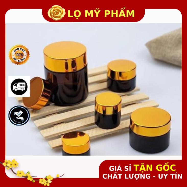 Hủ Đựng Kem ❤ GIÁ TỐT NHẤT ❤ Hủ Chiết Kem Thủy Tinh Nâu 5g,10g Nắp Vàng , Đen , hủ lọ chiết mỹ phẩm , phụ kiện du lịch