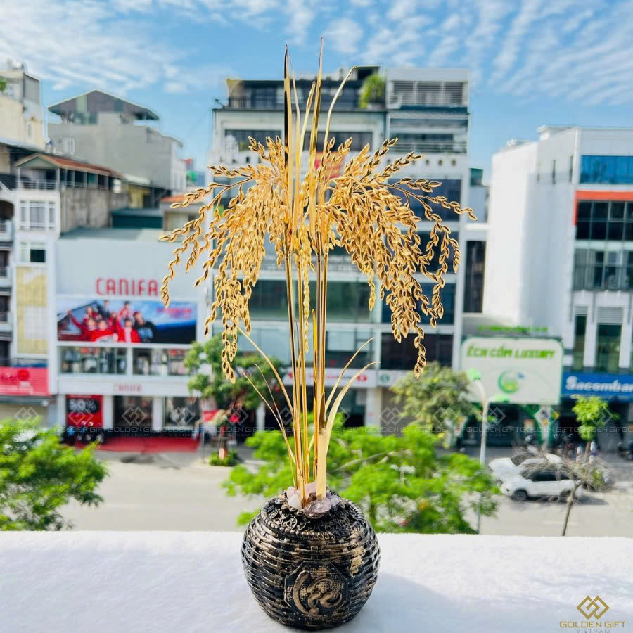 Hũ Lúa Tài Lộc Mạ Vàng do Golden Gift chế tác là một vật phẩm phong thuỷ độc đáo, vừa mang hơi thở truyền thống, vừa giúp mang đến nguồn năng lượng tốt lành cho không gian trưng bày, đem may mắn và sung túc đến cho gia chủ.