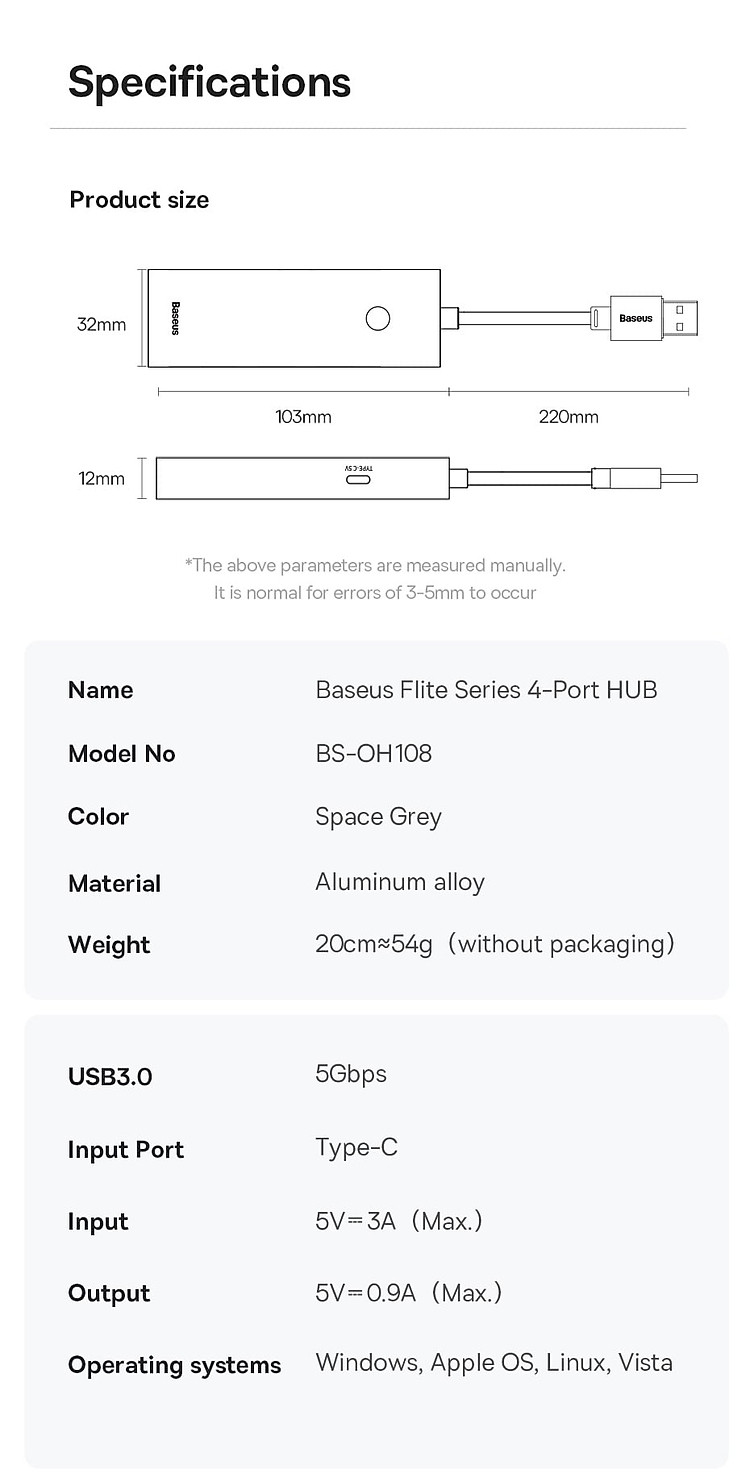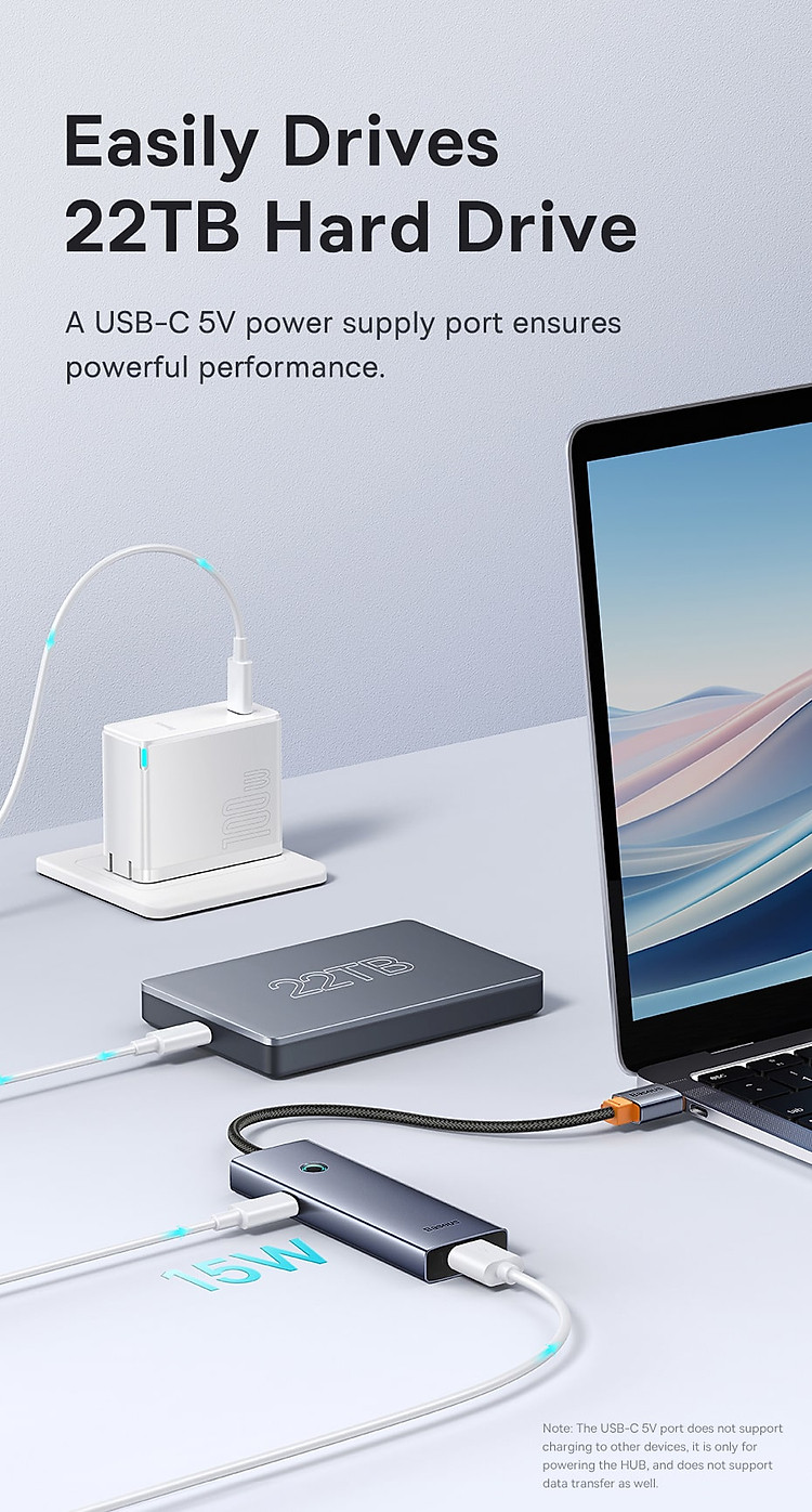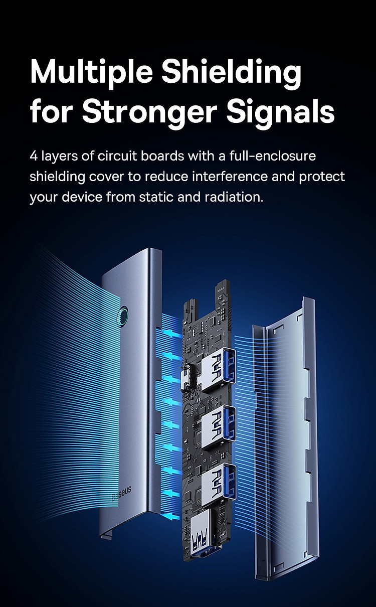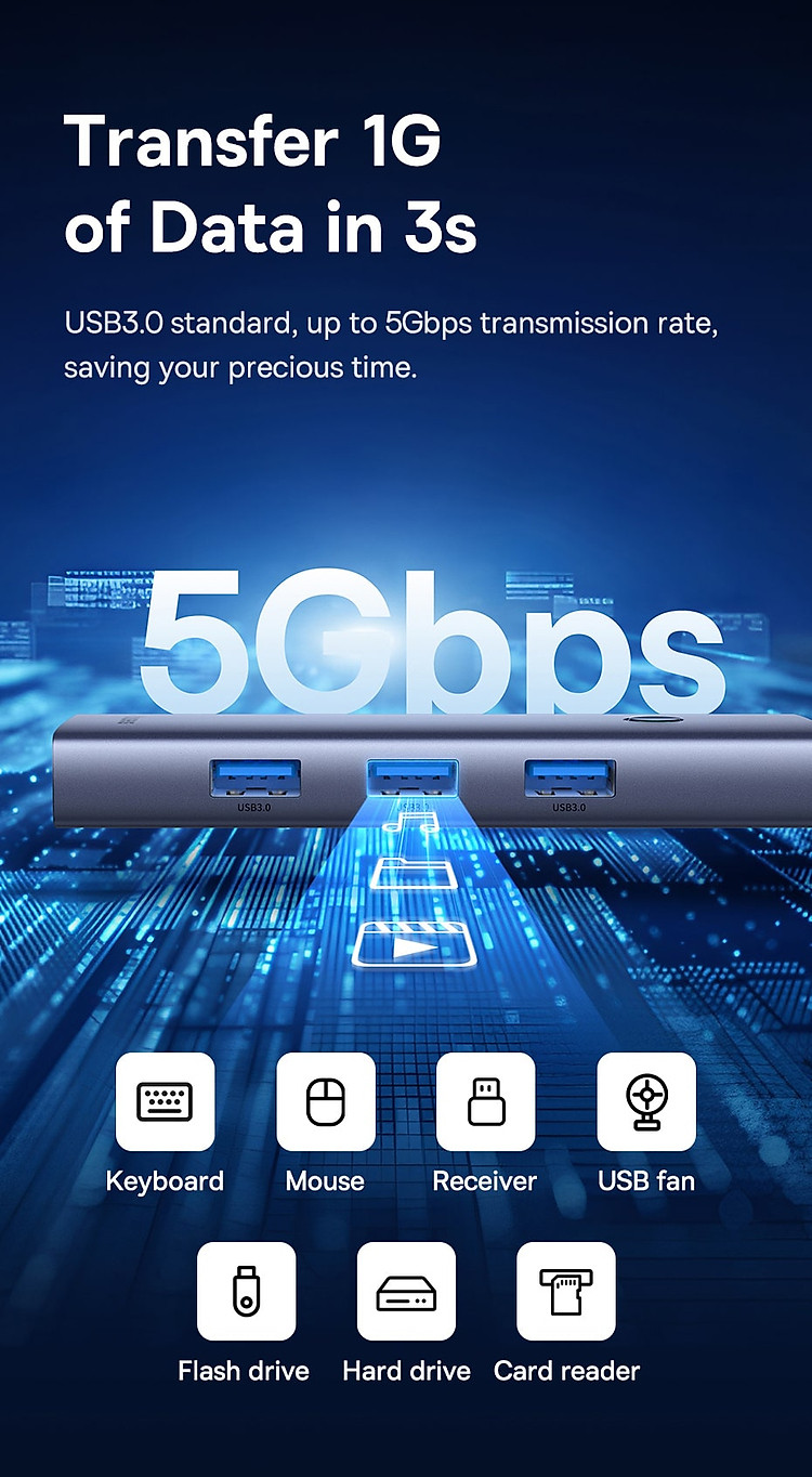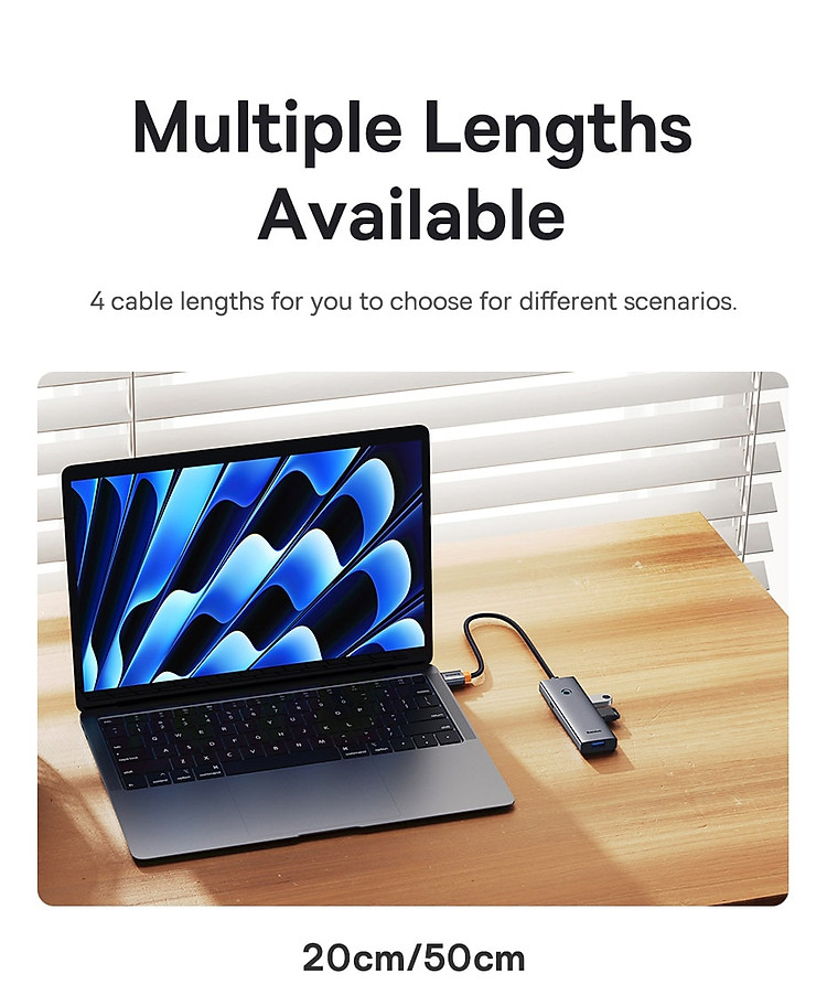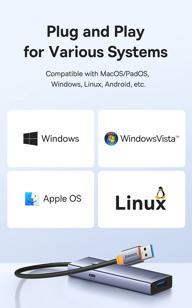 Plug-and-Play: Không cần cài đặt driver phức tạp, Baseus UltraJoy Series 4-Port HUB sử dụng chế độ Plug-and-Play, giúp bạn tiết kiệm thời gian và nhanh chóng sử dụng.