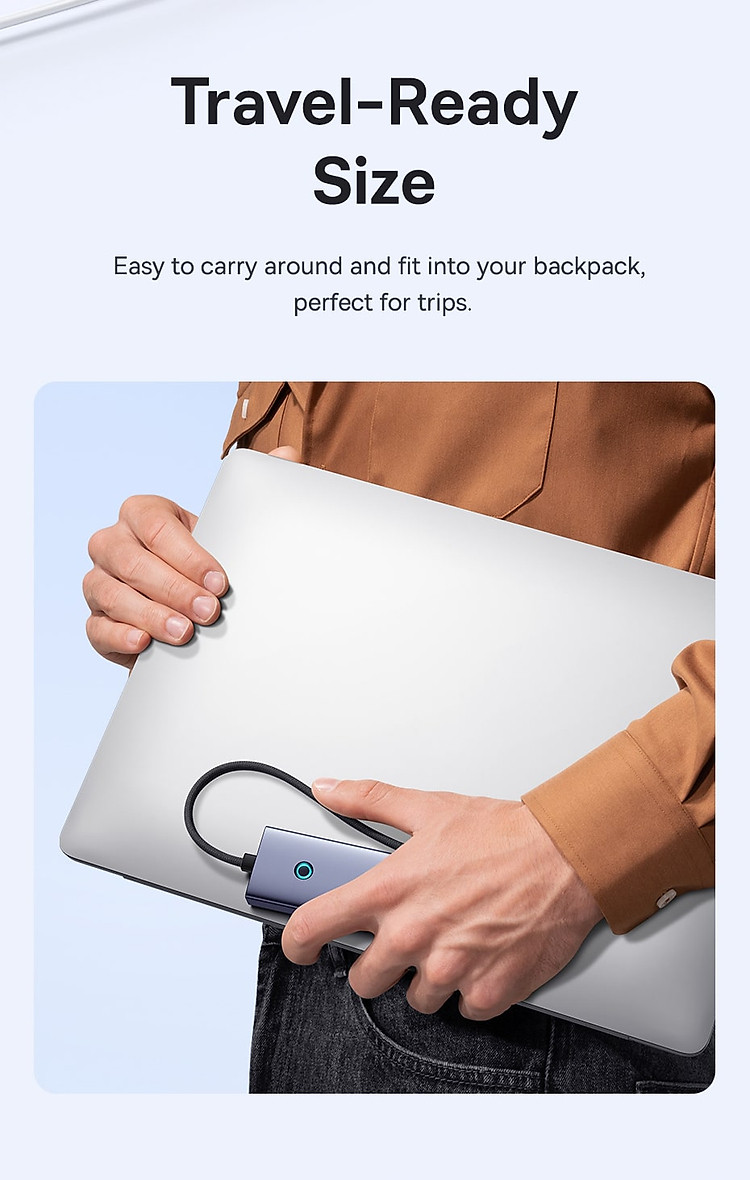 Dễ Dàng Mang Theo: Thiết kế nhỏ gọn và nhẹ, Hub này dễ dàng mang theo khi bạn di chuyển giữa các địa điểm làm việc.