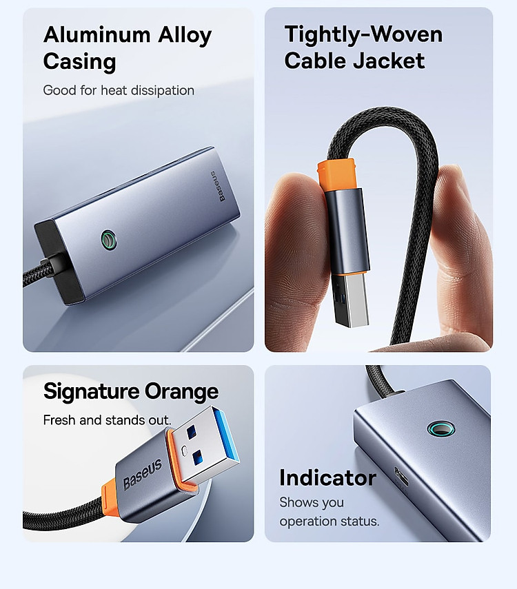 Baseus UltraJoy Series 4-Port HUB là một giải pháp hiệu quả để mở rộng khả năng kết nối của máy tính hoặc laptop của bạn. Dưới đây là những tính năng nổi bật của sản phẩm này: