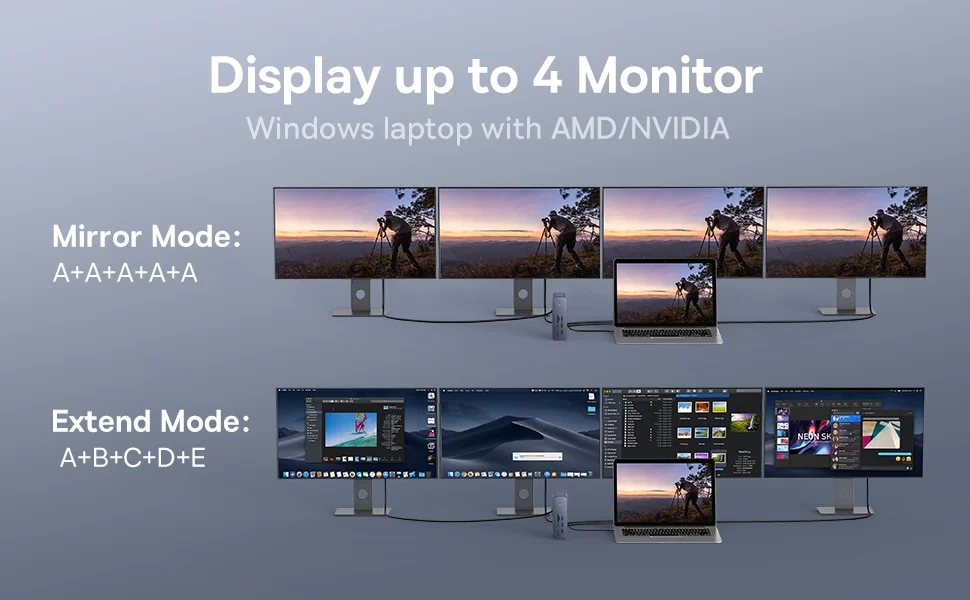 Đặc biệt, sản phẩm còn hỗ trợ kết nối đến 4 màn hình cùng lúc, giúp người dùng có thể làm việc đa nhiệm, xem phim hay chơi game trên nhiều màn hình với chất lượng hình ảnh tốt nhất.
