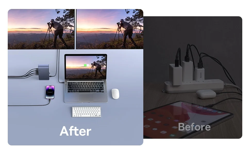 Với 17 cổng kết nối đa dạng, Hub Mở Rộng Kết Nối Đa Năng Baseus UnionJoy Pro17-Port Four-Screen Multifunctional HUB Docking Station cho phép bạn kết nối và sử dụng nhiều thiết bị cùng lúc, giúp tăng đáng kể hiệu quả làm việc và giải trí.