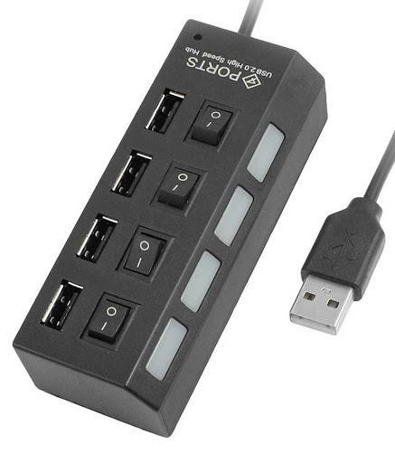 - Khi bạn không dùng hết số cổng USB bạn có thể nhấn công tắc bật, khi ấy đèn sẽ sáng và bạn có thể sử dụng cổng USB đó và nhấn công tắc tắt để tắt các cổng USB còn lại và đèn chỉ sáng ở công tắc bạn muốn bật.