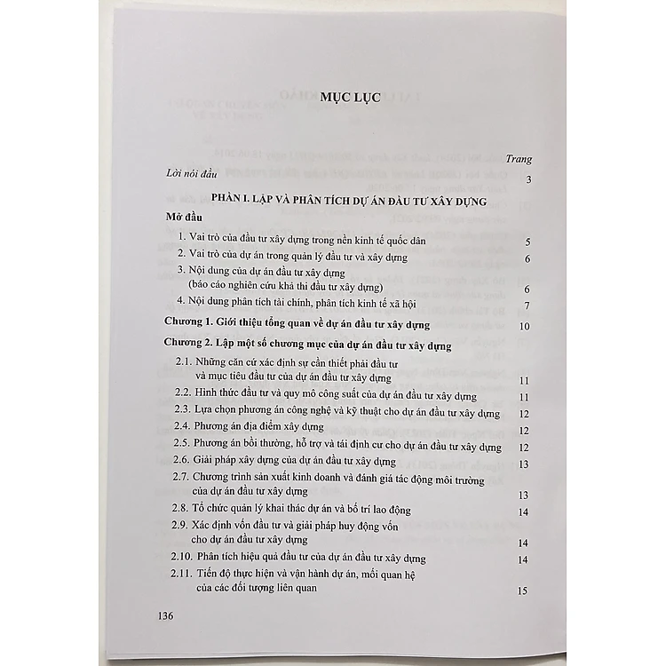 - Phần I: Lập và phân tích dự án đầu tư xây dựng