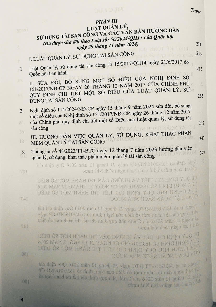 - Phần 3: Luật quản lý sử dụng tài sản công và các văn bản hướng dẫn