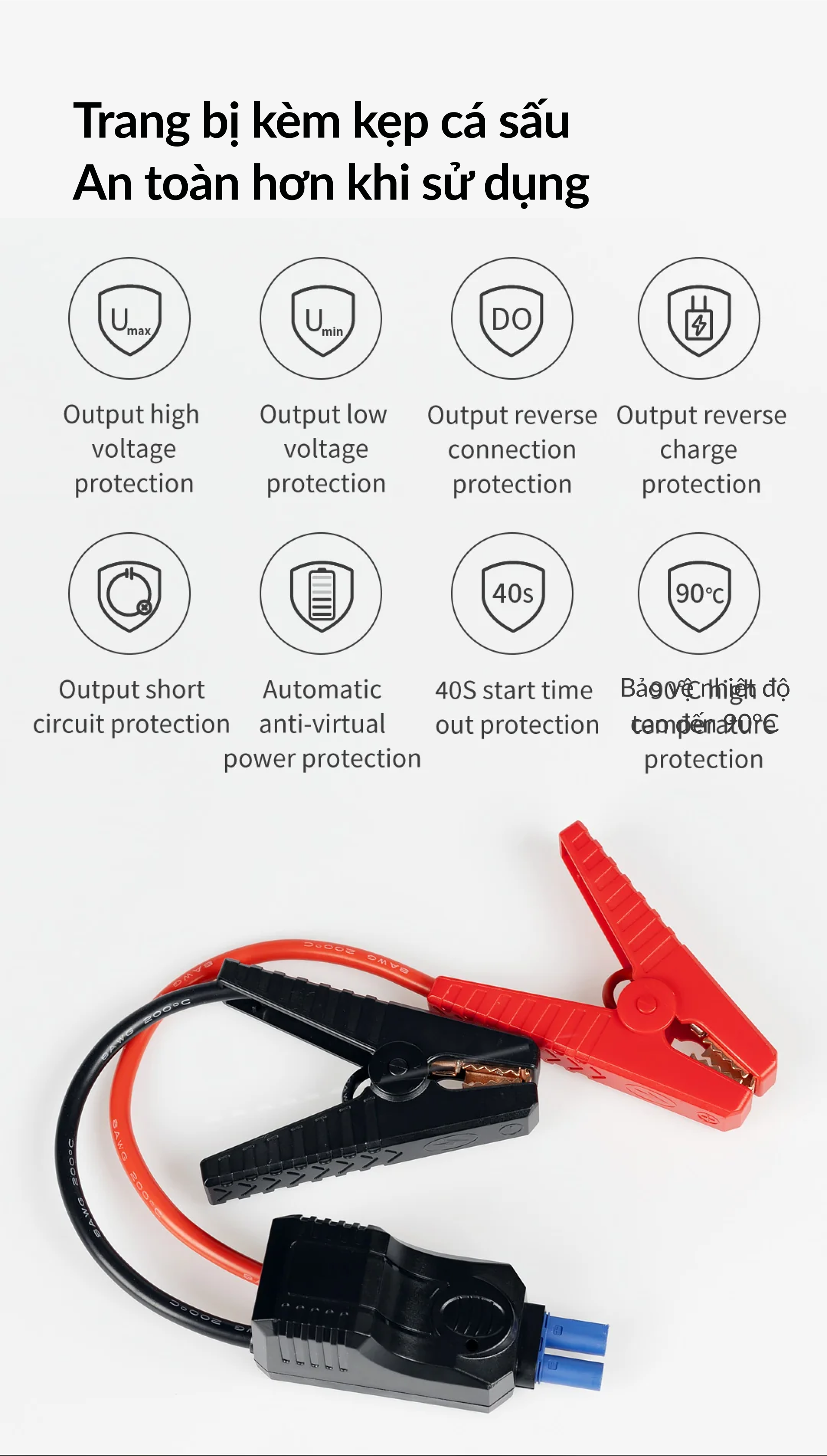 • Khởi động khẩn cấp: hỗ trợ dòng điện cao nhất 240C (600A)