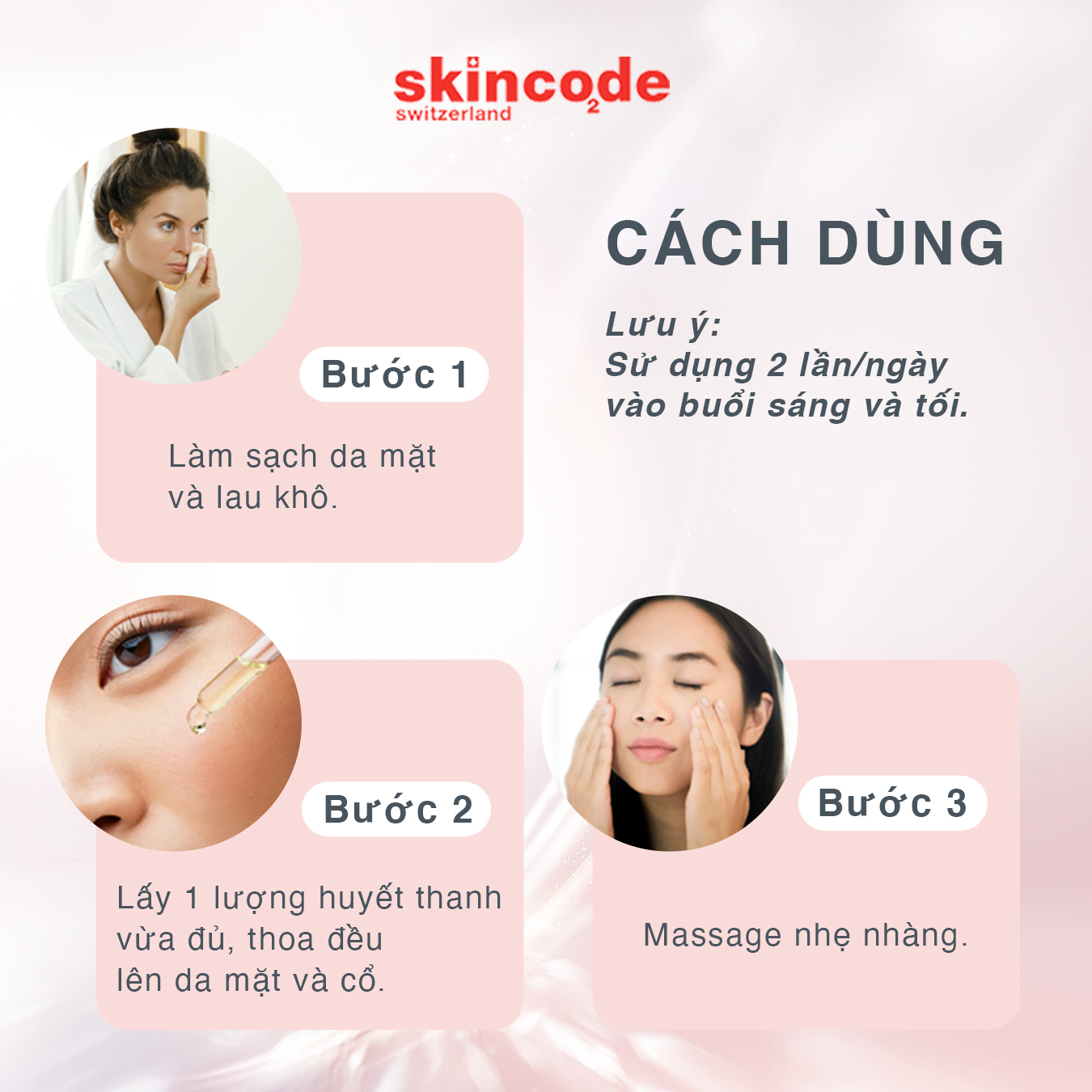 - Sử dụng serum dưỡng da 2 lần mỗi ngày vào buổi sáng và tối.