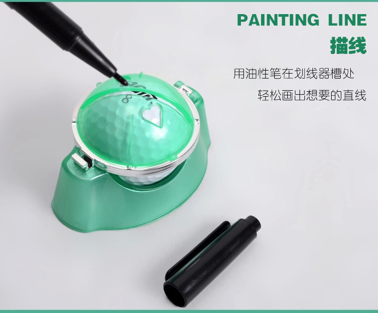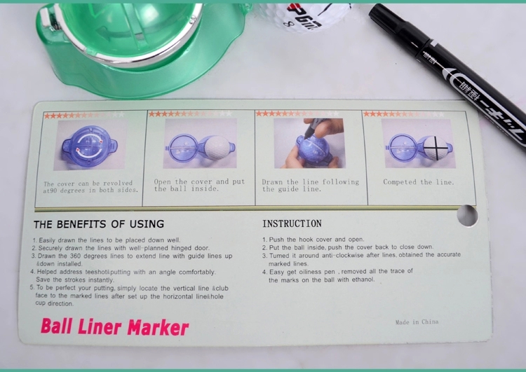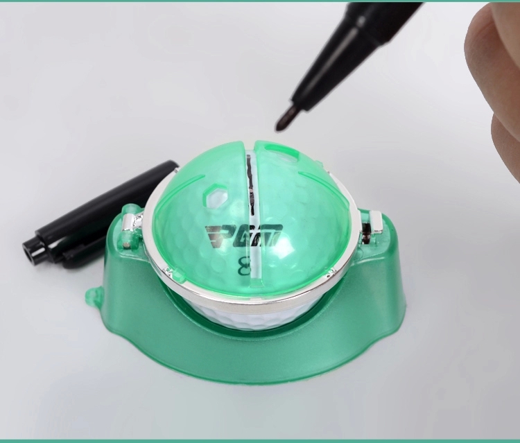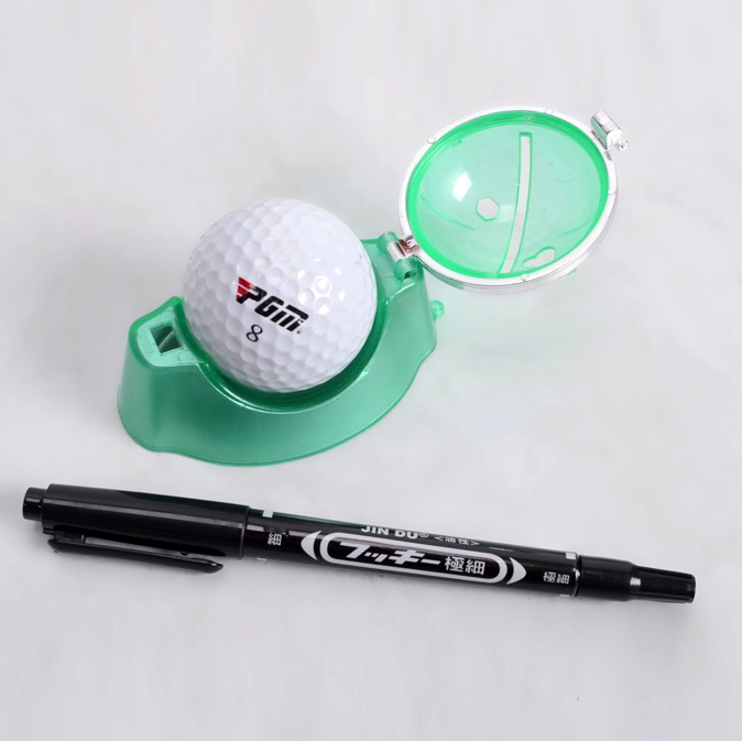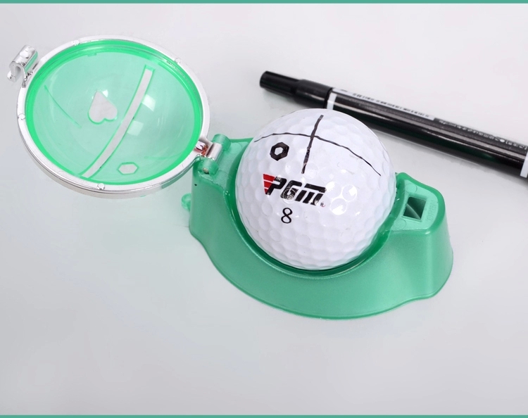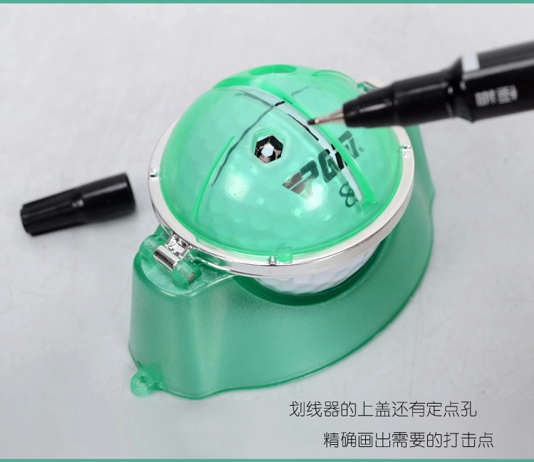 - Dụng cụ vẽ hướng trên bóng giúp dễ dàng kẻ một đường tròn trên quả bóng golf, giúp bạn hình dung tốt về hướng bóng đến khi tập trung vào quả bóng cho cú swing bóng trên tee của mình, hoàn hảo cho cú gạt bóng trên green.