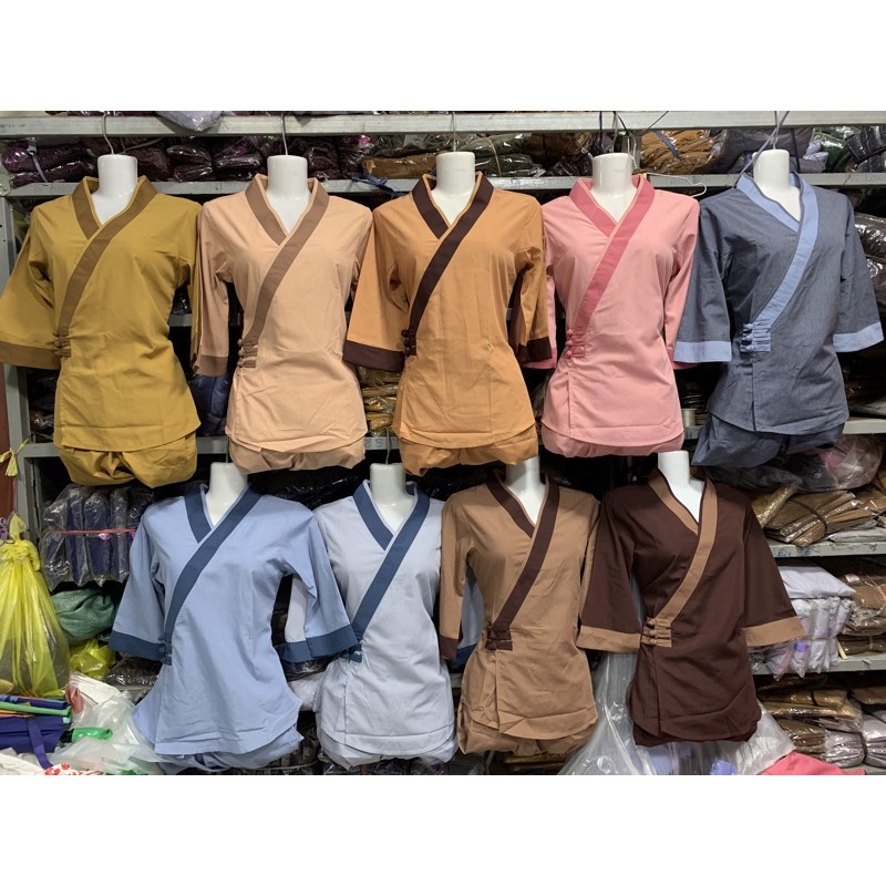 Giới thiệu Đồ đi chùa, thời trang nữ đồ lam đơn giản trơn không thêu phối đính nút
