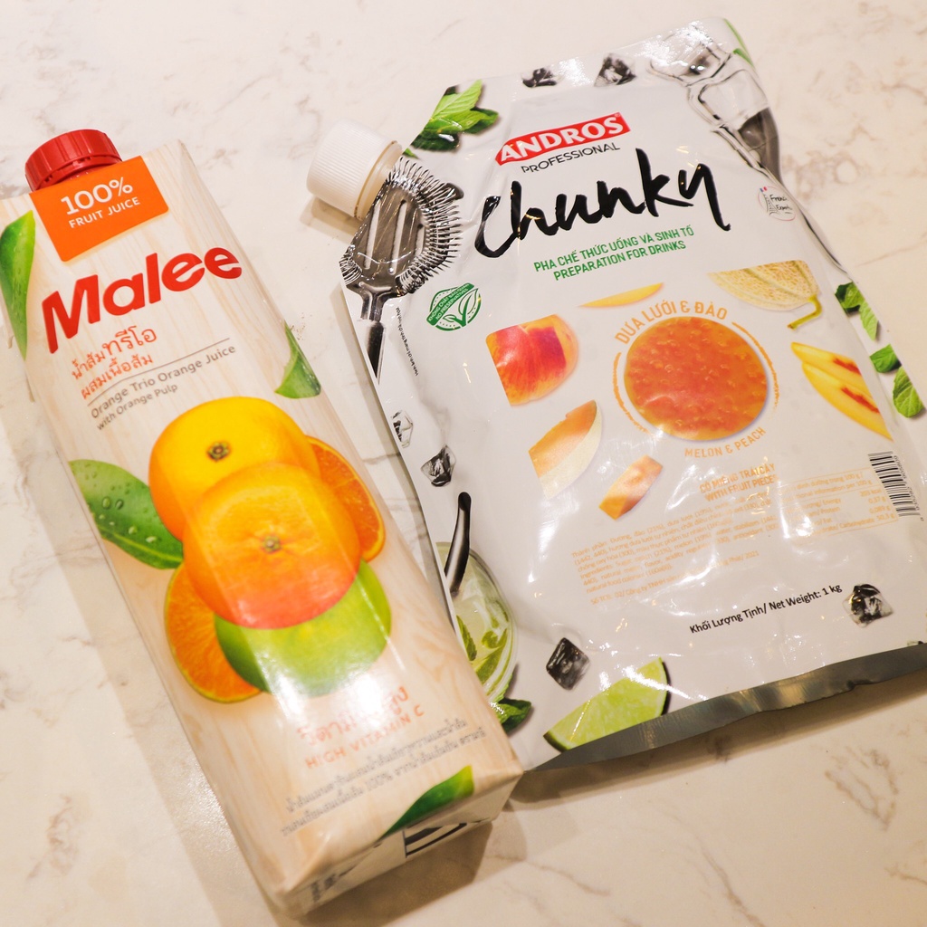 Thực phẩm và đồ uống > Đồ uống > Nước trái cây lên men || Bộ đôi Nước ép Cam Malee chai 1L Và Sinh tố Chunky Dưa lưới đào 1kg. Hàng công ty có sẵn giao ngay