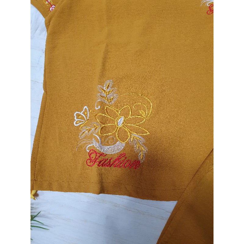 Họa tiết trên áo thêu hết nha khách quần có túi xéo 2 bên, mấy chị đẹp nhà mình bmnên có 1b nek.