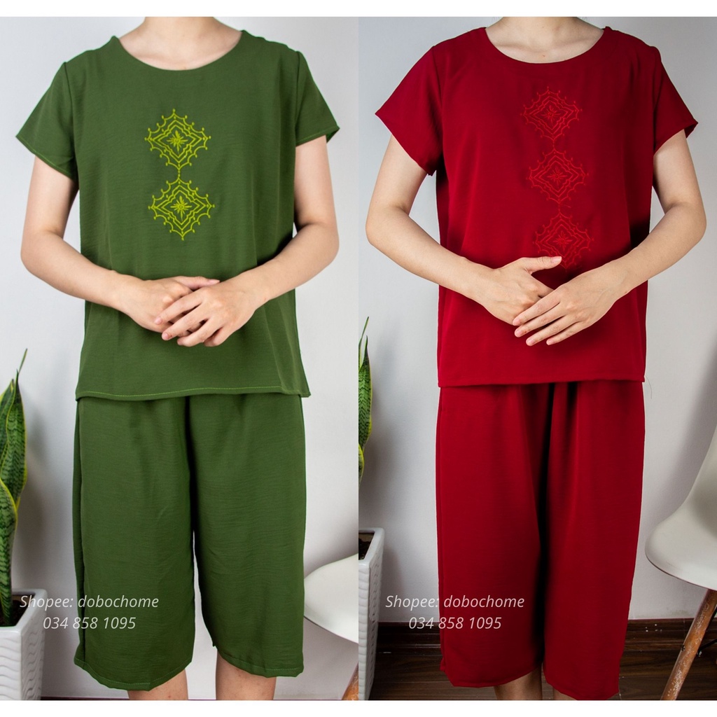 Giới thiệu Bộ Đũi Thái Trung Niên Đồ Bộ Lửng Trung Niên Bộ Quần Áo Trung Niên Mùa Hè Set Đồ Ống Rộng Trung Niên