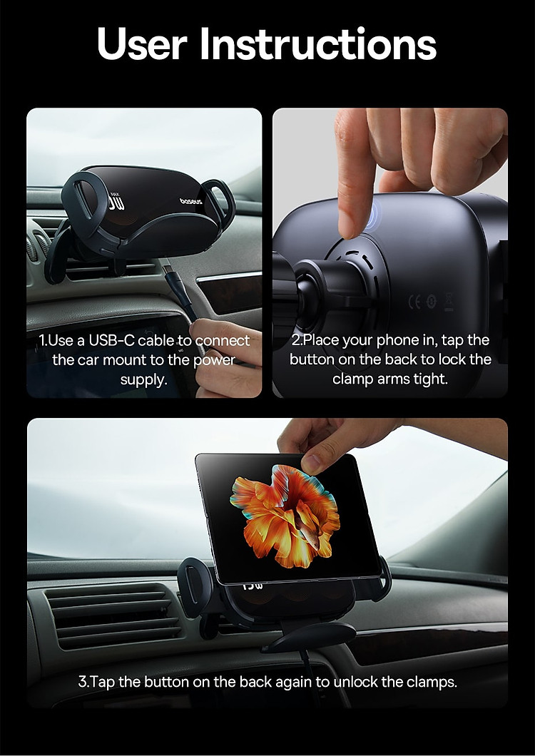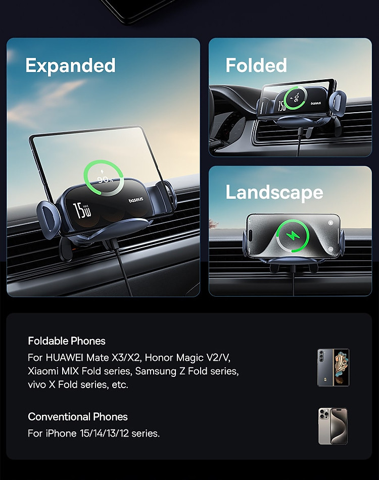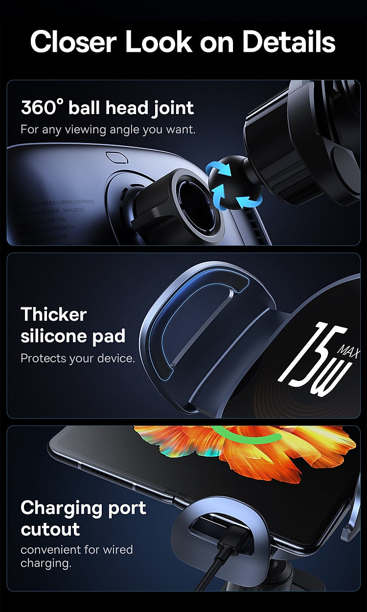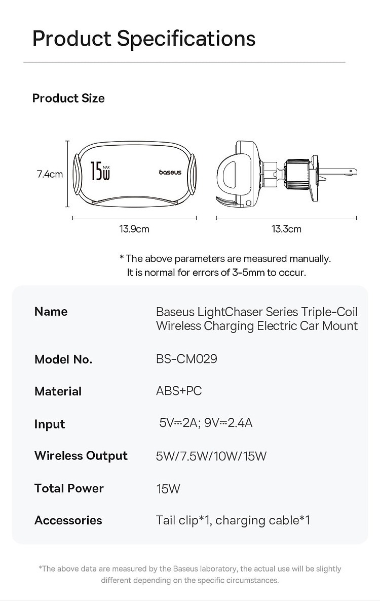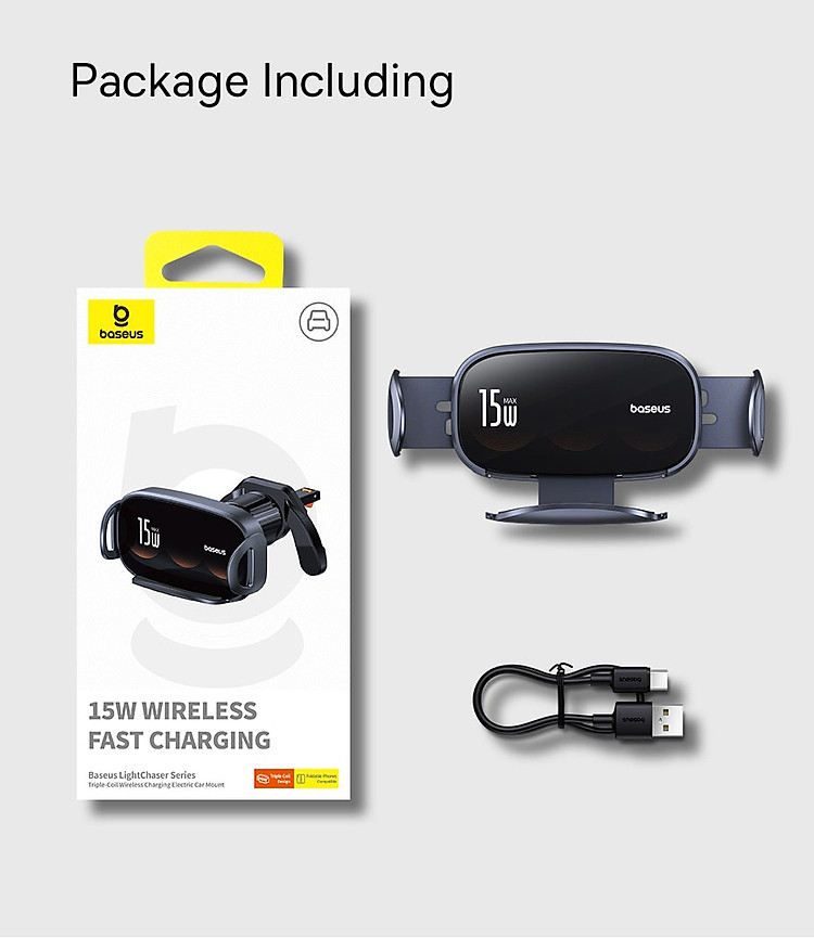Tên | Đế Giữ Điện Thoại / Máy Tính Bảng Tích Hơp Sạc Không Dây Trên Xe Ôtô Baseus LightChaser Series Triple-Coil Wireless Charging Electric Car Mount |