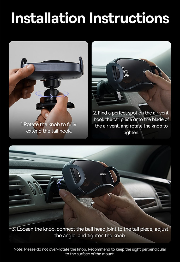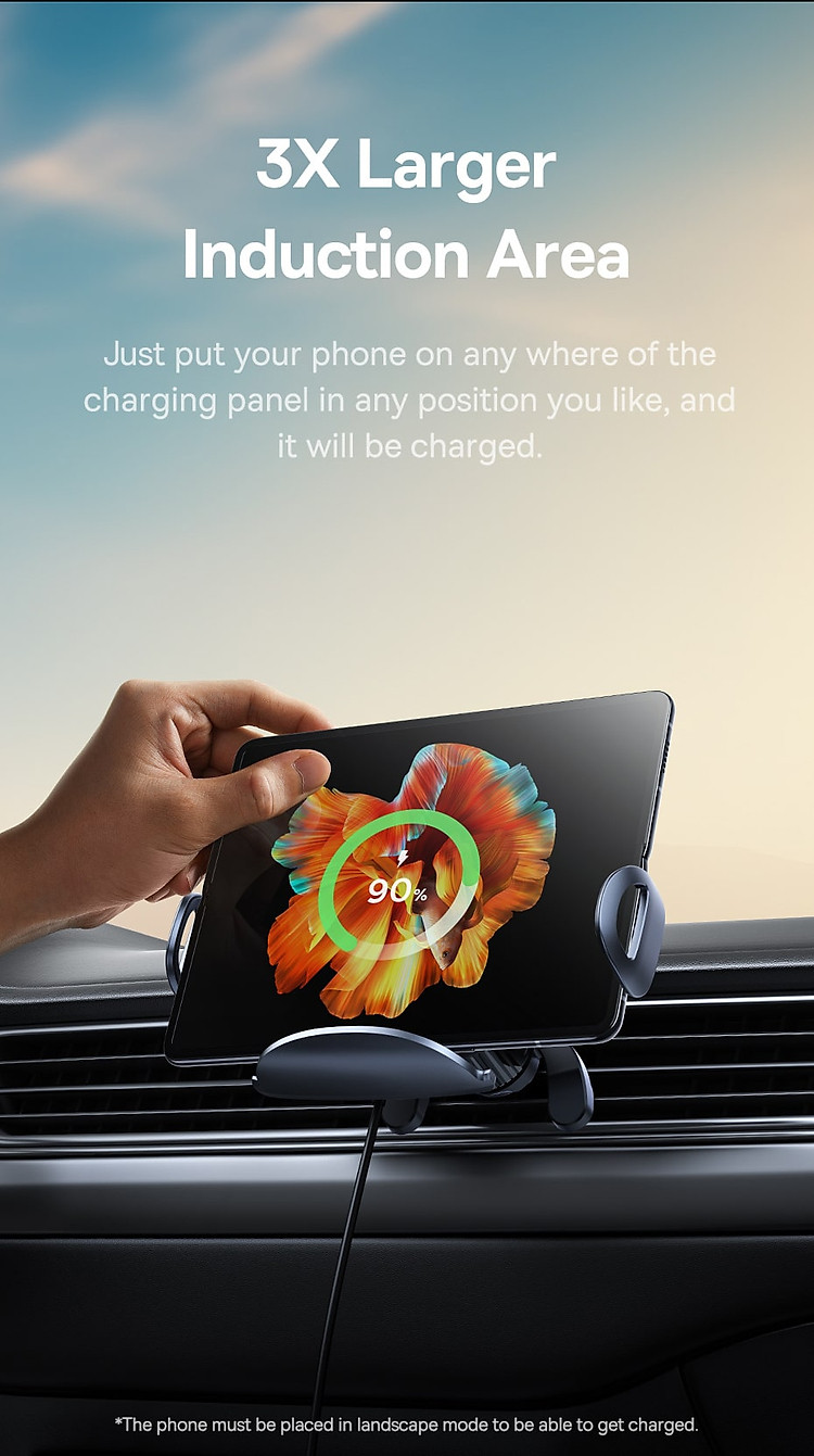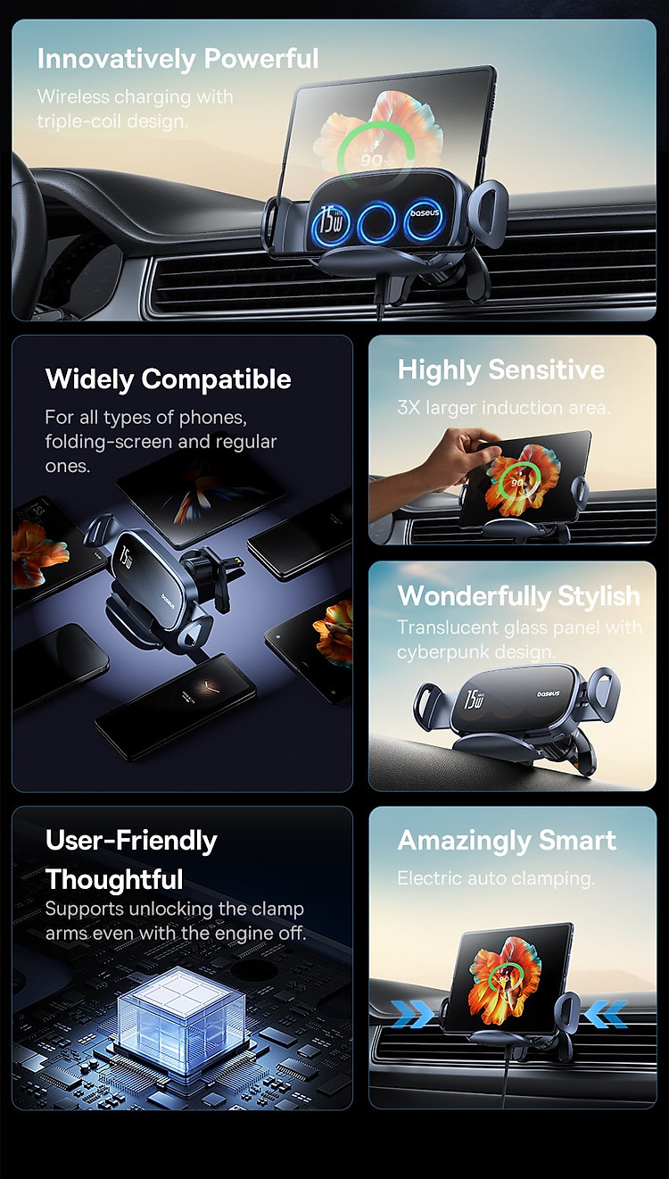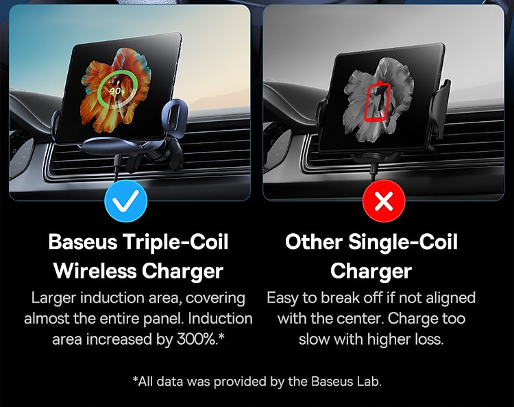 | Tên | Đế Giữ Điện Thoại / Máy Tính Bảng Tích Hơp Sạc Không Dây Trên Xe Ôtô Baseus LightChaser Series Triple-Coil Wireless Charging Electric Car Mount |
