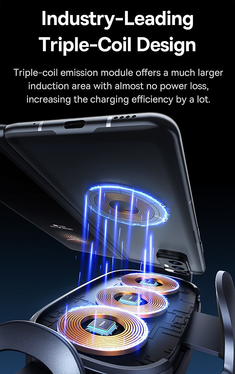Đế Giữ Điện Thoại/Máy Tính Bảng Tích Hợp Sạc Không Dây Trên Xe Ôtô Baseus LightChaser Series Triple-Coil Wireless Charging Electric Car Mount là một giải pháp tiện ích cho những người thường xuyên di chuyển và cần sử dụng điện thoại trong xe ôtô.