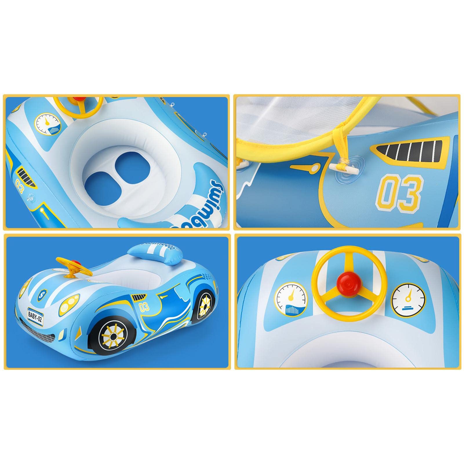 Thuyền bơm hơi còn được thiết kế có vô lăng để trẻ có thể cầm nắm, điều này cũng rất hữu ích cho sự phát triển xúc giác và thị giác sớm của trẻ.