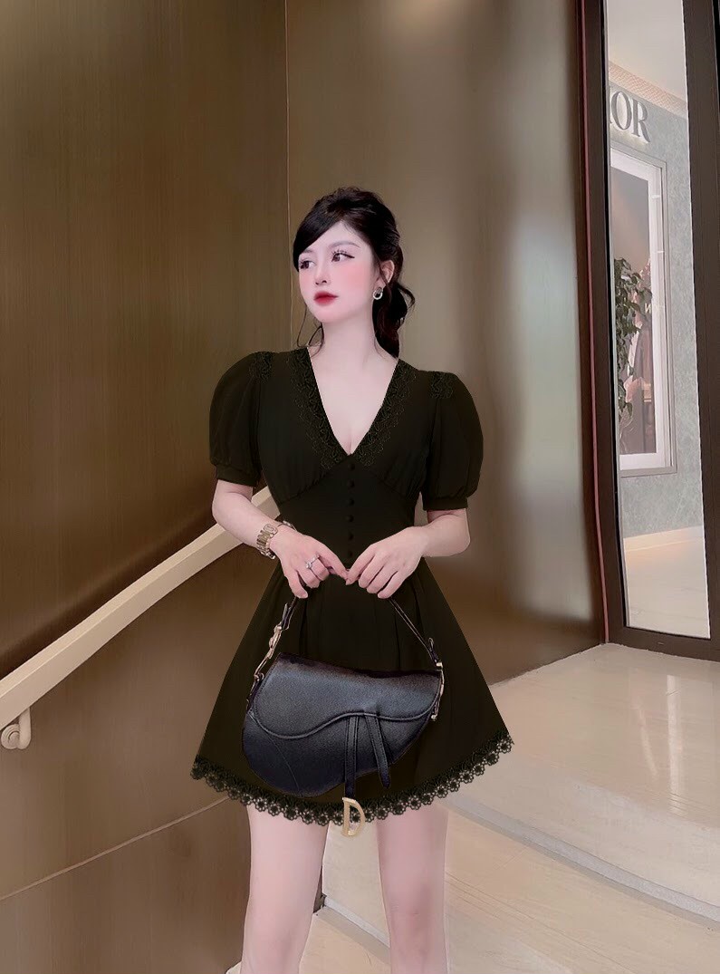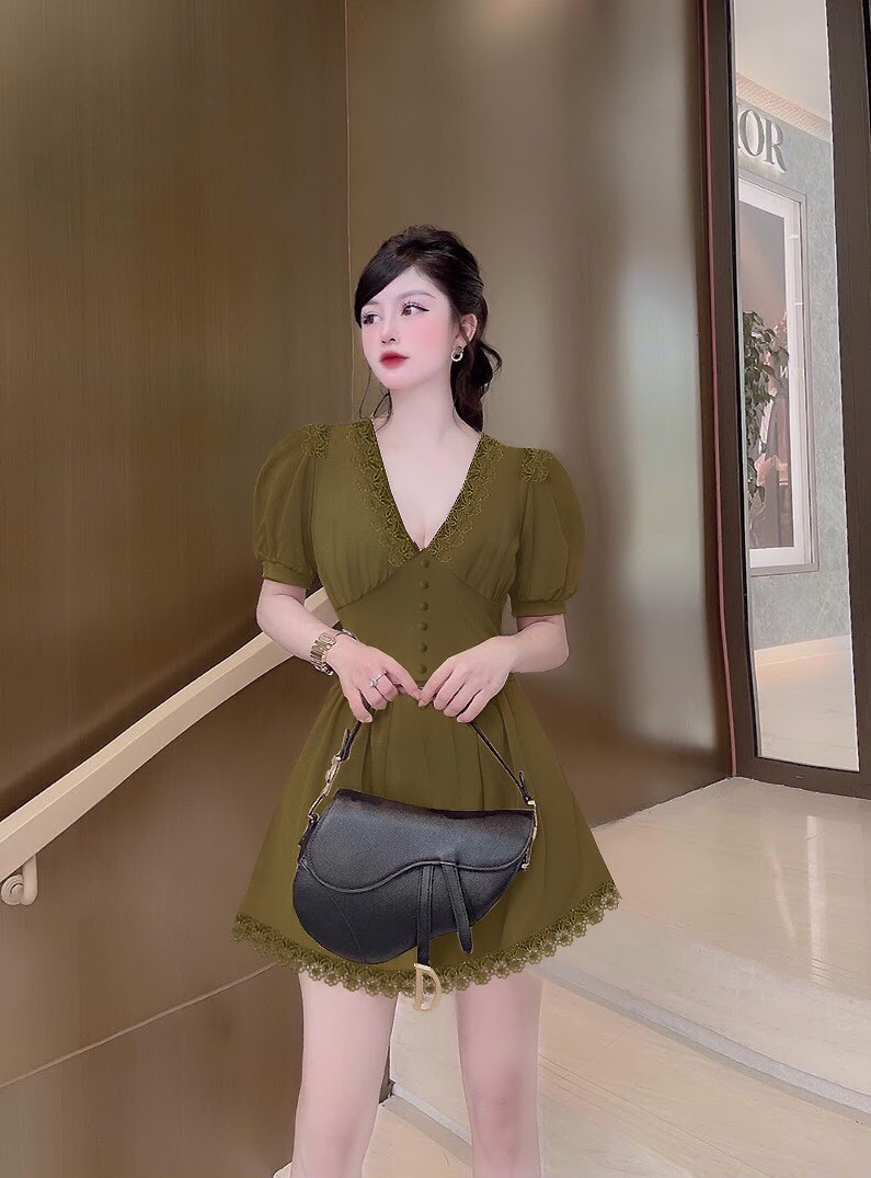 Jum short giả váy phối ren có quần rời dây kéo lưng xinh xắn