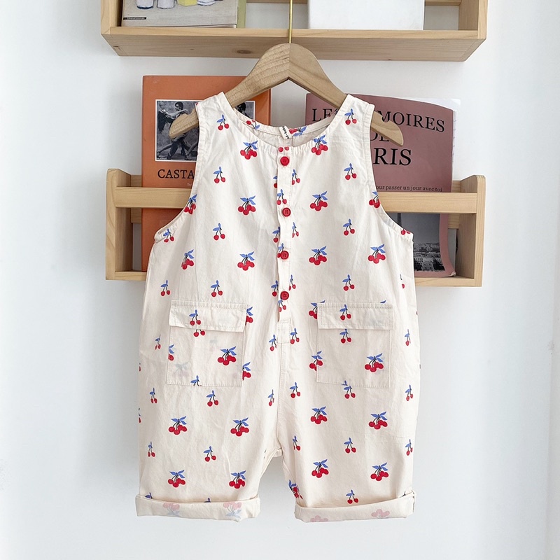 Thời trang trẻ em & trẻ sơ sinh > Quần áo bé gái > Đồ liền thân || Jumsuit Bé Gái 1,2,3,4,5,6 Tuổi Bộ Áo Liền Quần Trẻ Em Chất Kaki Mềm Mại Hình Cherry Dễ Thương