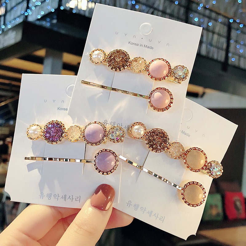Phụ Kiện Thời Trang > Phụ kiện tóc > Kẹp tóc || K93 Set 2 kẹp đính hạt tròn cầu kỳ