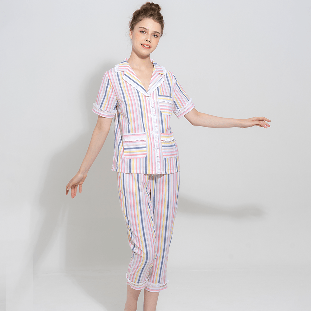 - Bộ kate lửng piijama, form dáng basic, 3 túi áo trang trí