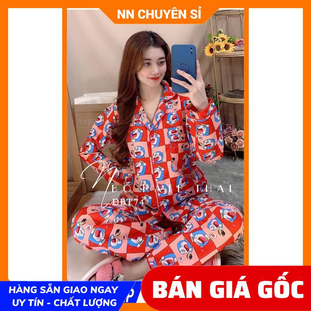 Giới thiệu Bộ kate thái phom to cho nữ mặc nhà chất vải mềm mịn mát in hình doremon kitty hoạt hình dễ thương DBT thái tay dài