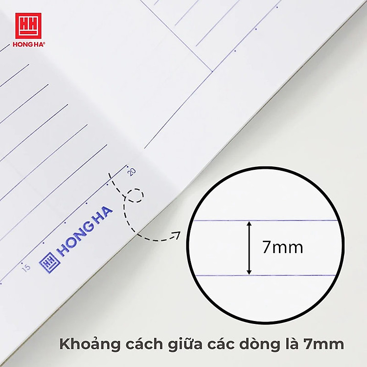- Ruột vở kẻ ngang 7 mm, dòng kẻ in 2 màu đậm nét giúp việc ghi chép dễ dàng