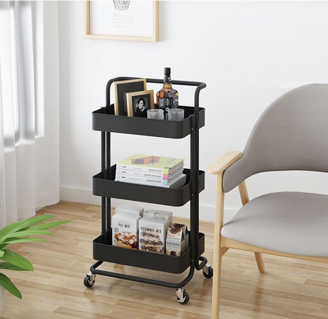 Kệ được thiết kế 3 tầng đựng đồ tiện dụng, có Tay đẩy với Bánh xe di chuyển và chốt khóa cố định