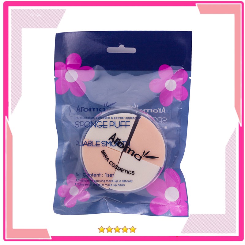 Mút đánh nền Aroma hộp 4 miếng - Bông phấn trang điểm AROMA Cotton Pollen (4 miếng) được sản xuất theo công nghệ cao của Hàn Quốc