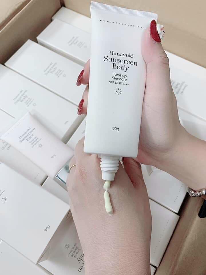 Giới thiệu Kem Chống Nắng Sunscreen Body Hanayuki Chính Hãng SPF 50+/PA++++ Lâu Trôi , Nâng Tông 100g