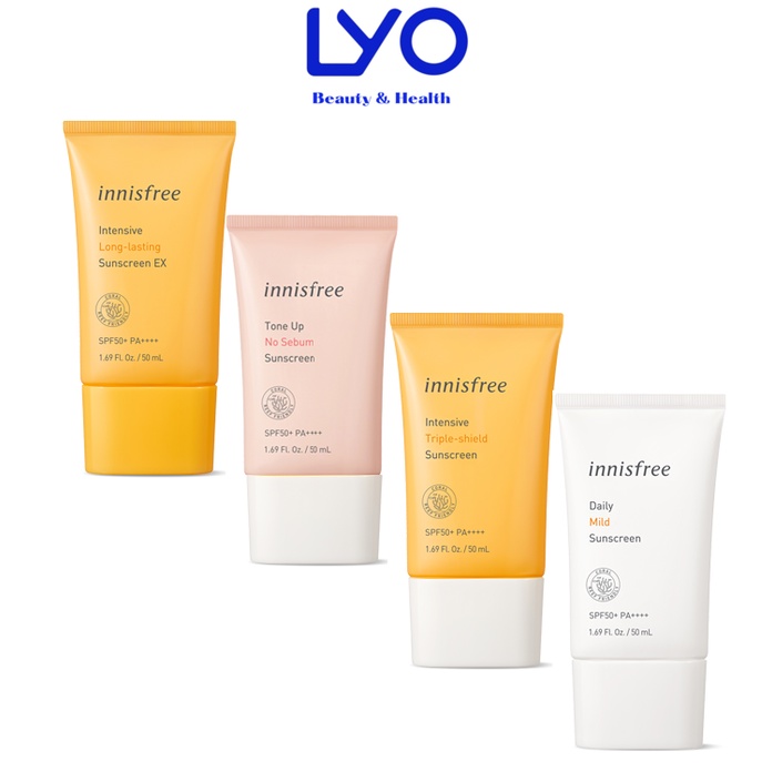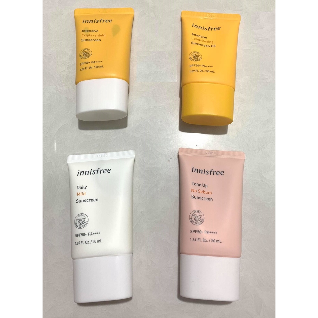 Giới thiệu Kem chống nắng Innisfree No Sebum hồng , Long Lasting , Mild , vàng Triple Shield Sunscreen SPF 50+/PA++++ 50ml.