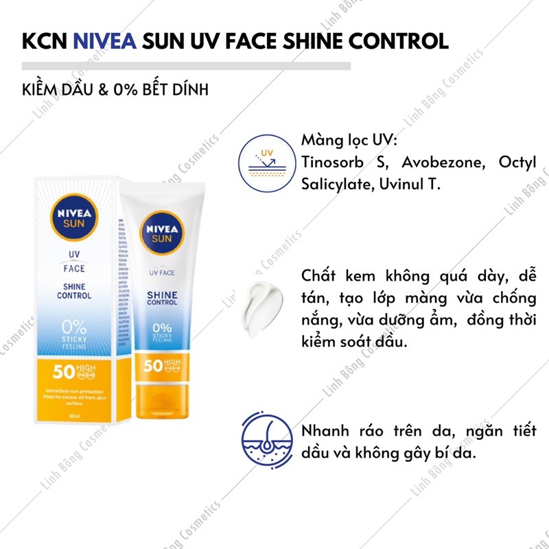 🌤 Sản phẩm kem chống nắng Nivea Shine Control sở hữu 6 màng lọc #hữu_cơ mạnh mẽ #bảo_vệ_da trước tác động của tia #UVA và #UVB (#avobenzone, #homosalate, #tinosoebS, #octisalate, #PBSA và #UvinulT150).
