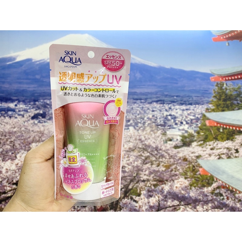 💁♀️ Sunplay Skin Aqua Tone Up UV Essence – Tinh chất chống nắng hiệu chỉnh sắc da: - Chống nắng hiệu quả: SPF50+, PA++++. - Hiệu chỉnh sắc da: Sự hòa quyện sắc xanh và sắc hồng độc đáo tạo nên sắc tím hoa lavender giúp che phủ tự nhiên, nâng tông da sáng hồng. - Tạo hiệu ứng trong suốt 3D: Các hạt ngọc trai siêu mịn phản chiếu ánh sáng đa chiều cho da trong suốt, rạng rỡ. - Giữ ẩm và dưỡng sáng da: Thành phần dưỡng ẩm Hyaluronic Acid giúp duy trì độ ẩm tự nhiên, kết hợp Vitamin C dưỡng da sáng mịn. + Không chứa cồn + Không gây khô da + Dịu nhẹ cho da nhạy cảm + Có thể dùng làm lớp lót trang điểm