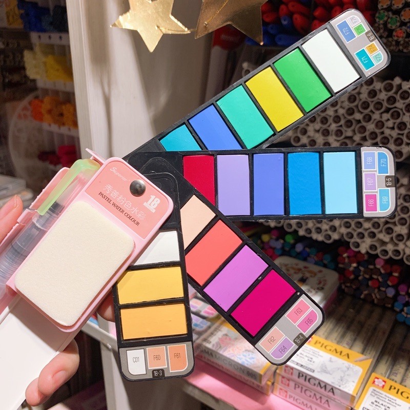 Giới thiệu [KÈM CỌ] Màu nước nén dạng thẻ SUPERIOR tông cơ bản, tông pastel ngọt ngào