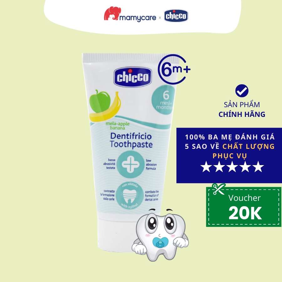 Giới thiệu Kem đánh răng Chicco hương chuối, táo an toàn cho bé từ 6 tháng tuổi 50ml - MAMYCARE